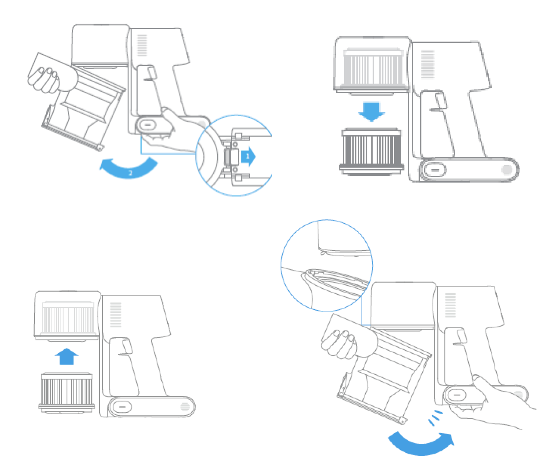 It is recommended to wash the cyclone module, built-in foam and HEPA filter in every 3-4 month before replacing them with a new one.