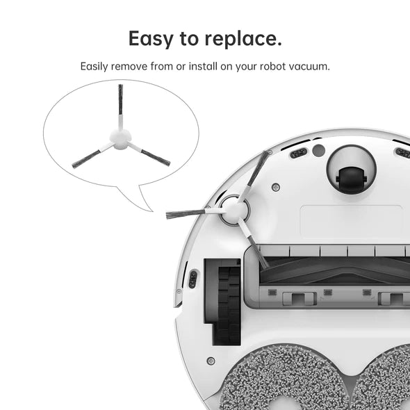 - 【Side Brushes to Sweep Clean】The 3-armed side brushes clean up the dust in corners and concentrates the dust and debris toward the suction port during rotation, making cleaning more effective and thorough.
