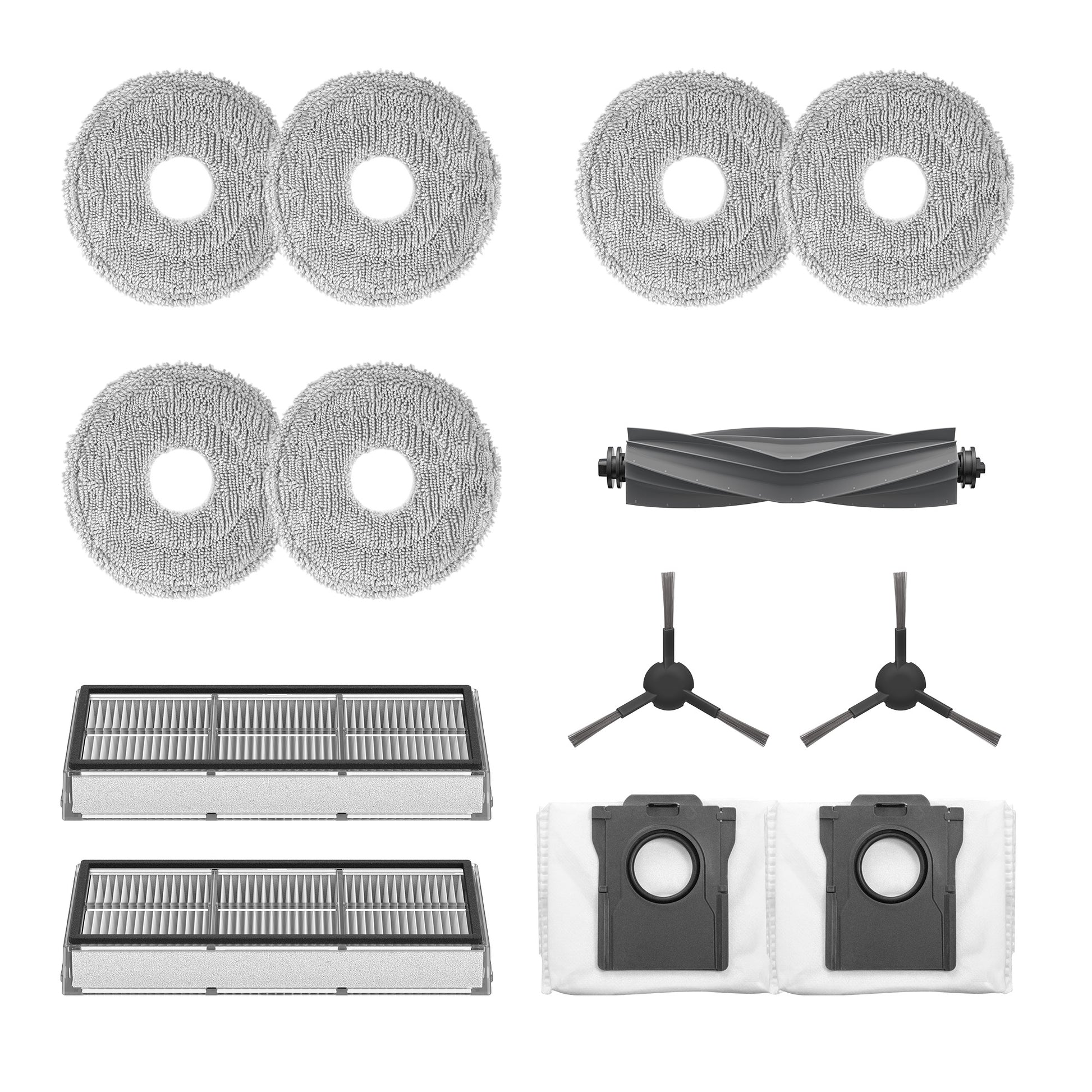 - 【What You Get 】1x main brush, 2x side brushes, 2x filters, 2x 3L dust bags, and 6x mop cloths.