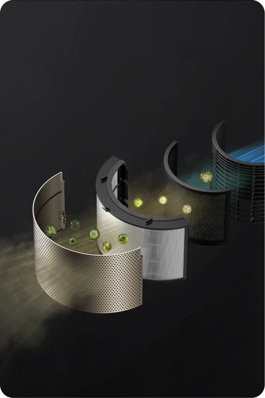 Detects rising pollution and responds instantly—filtering out PM2.5, allergens, viruses, and more, without you lifting a finger.