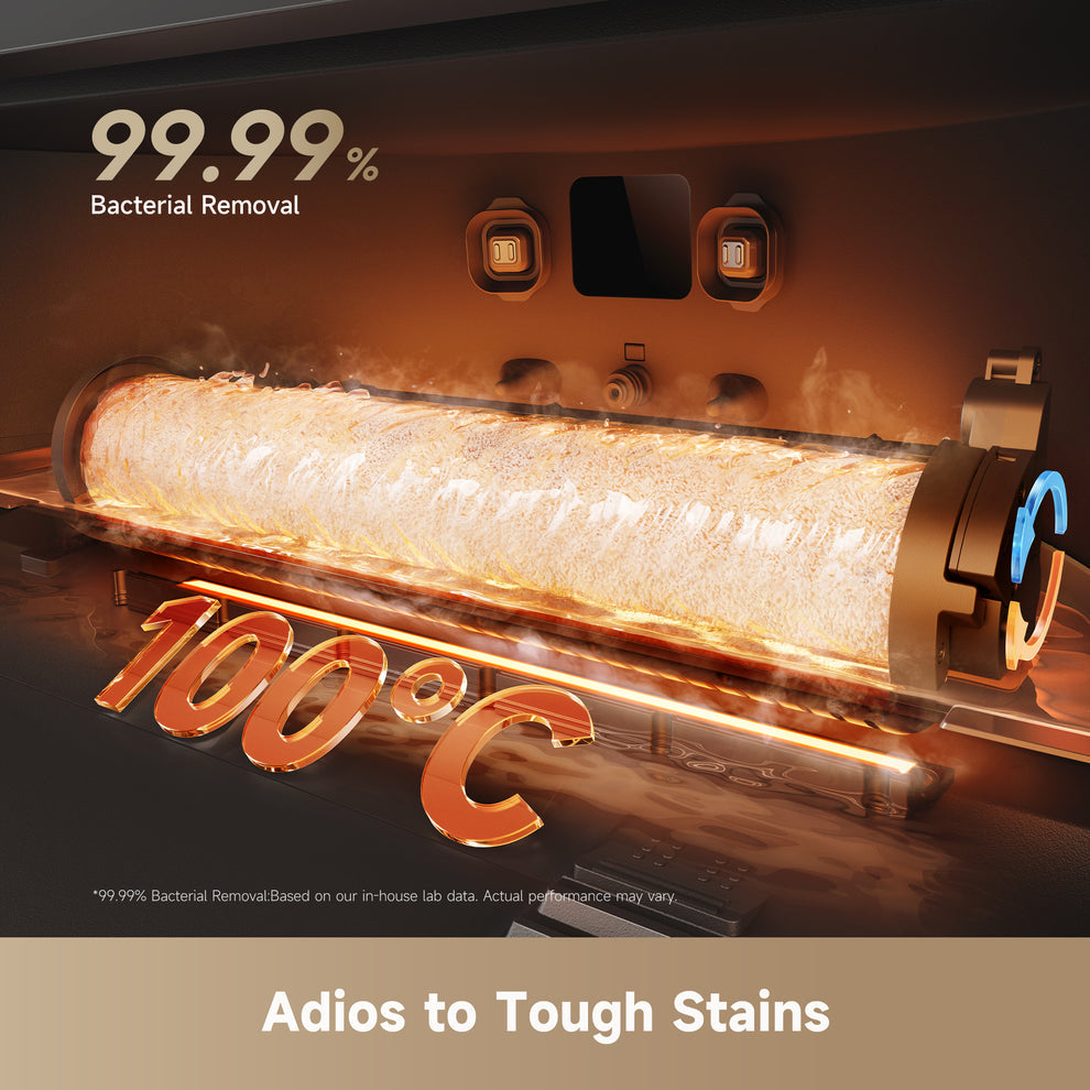 *100°C hot water: Temperatures above the washboard's PTC system can reach 100°C after heating under ambient room temperature (around 23°C), based on our in-house lab data. Actual temperature may vary.