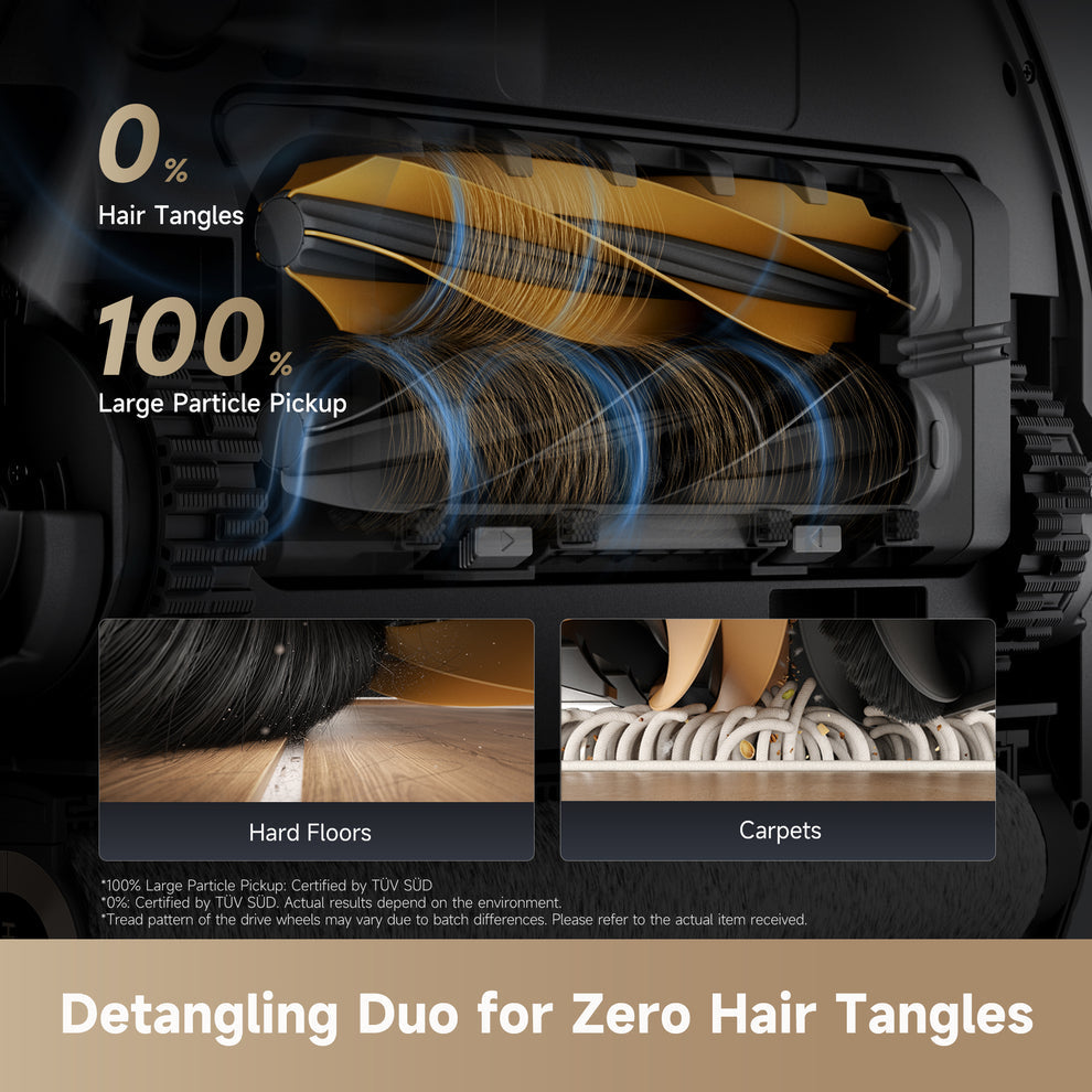Tired of demanding mopping and maintenance? Aqua10 Roller addresses this with real-time live water roller mopping that washes the mop pads while cleaning—paired with 6cm ProLeap™ navigation, obstacle avoidance, carpet care, 100% hair detangling, and self-cleaning and drying.