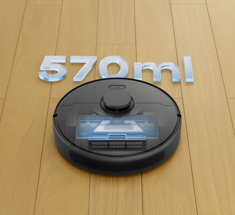 A high-capacity 570ml dust box efficiently traps and seals your short hair, pets' fur, dirt, and small particles, preventing dust leakage and reducing unpleasant odors for an upgraded sweeping cycle.