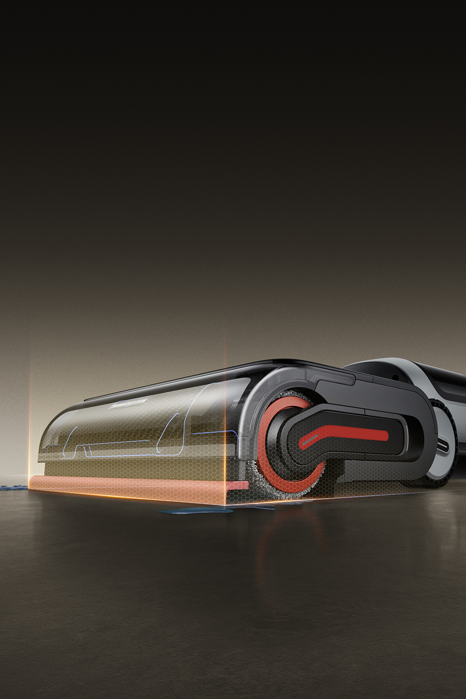 • *Triple edge cleaning: The distance between the wall and the front, left, right sides of the brush can be reduced to 0mm for dust removal, based on GTT Surface Cleaning & Air Treatment Laboratory.