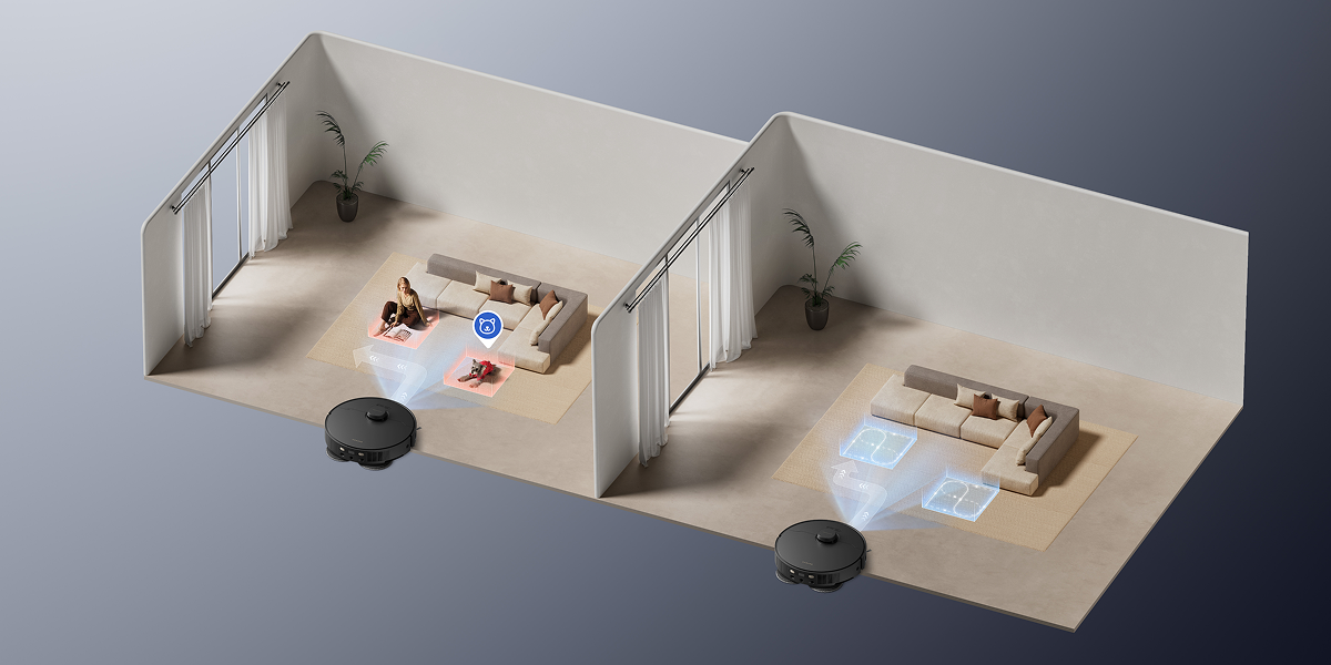 *Intensive Carpet Cleaning Mode: Once enabled, the robot vacuum will slow down and clean the carpet twice; Suction Boost Mode: Once detecting carpets, the robot vacuum will clean with maximum suction power. Not available under Quiet Suction Mode. Both modes can be set through the Dreamehome App.