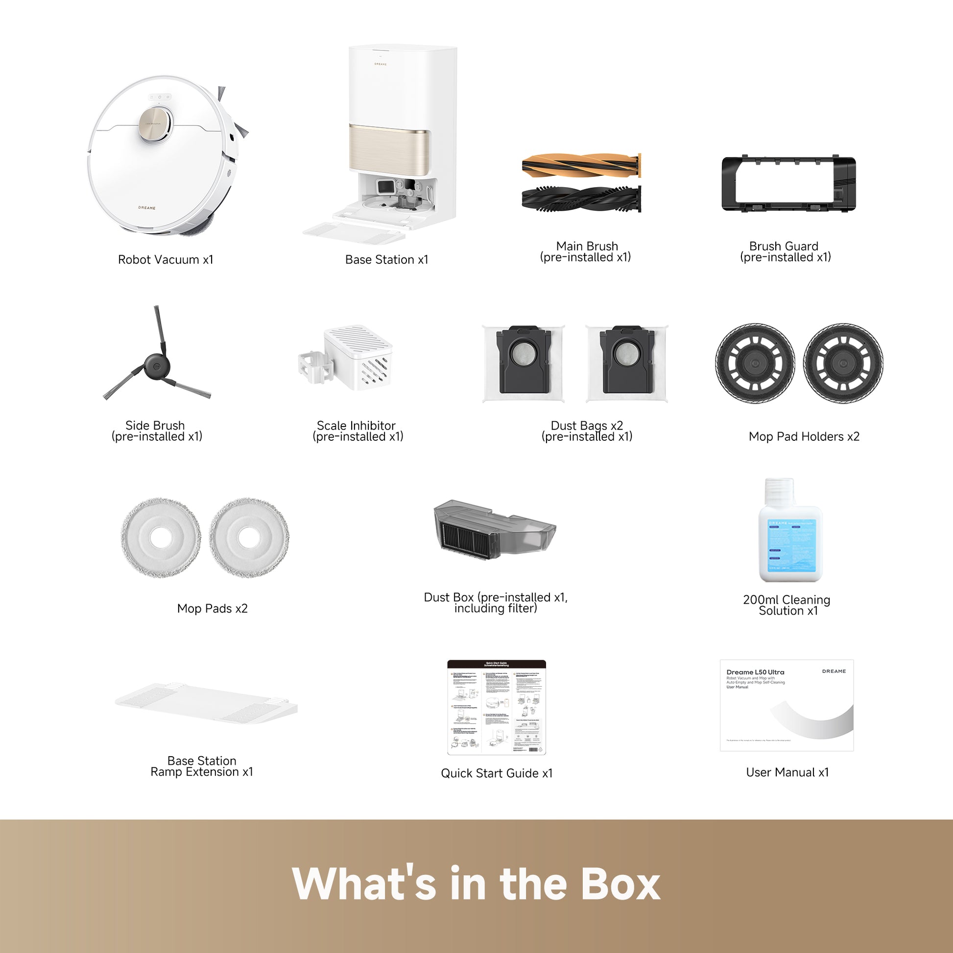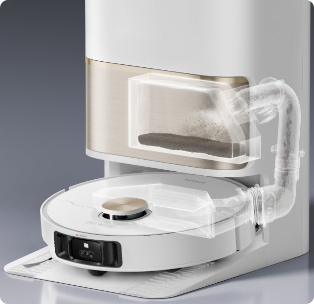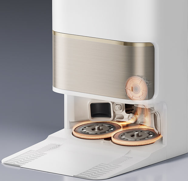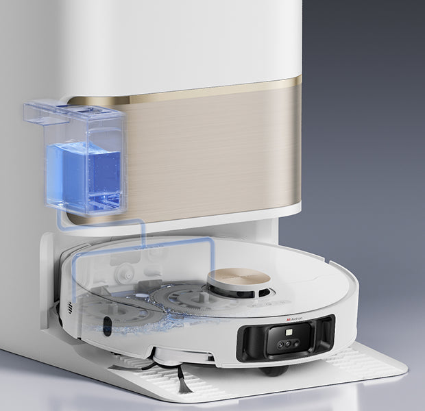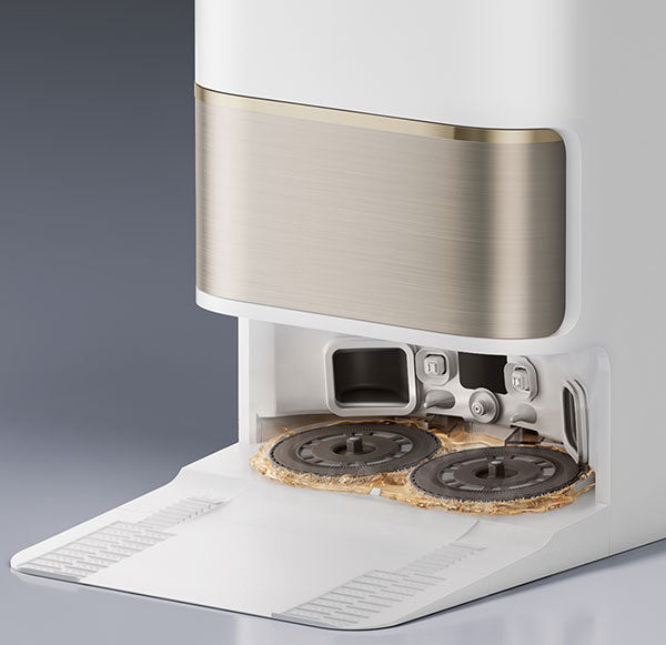 With the TripleUp Tech, L50 Ultra lifts the side and main brushes while lowering its mop pads for thorough floor cleanliness. It effectively handles stains like milk or coffee, keeps brushes dry, and prevents the spread of odors in the dust box.