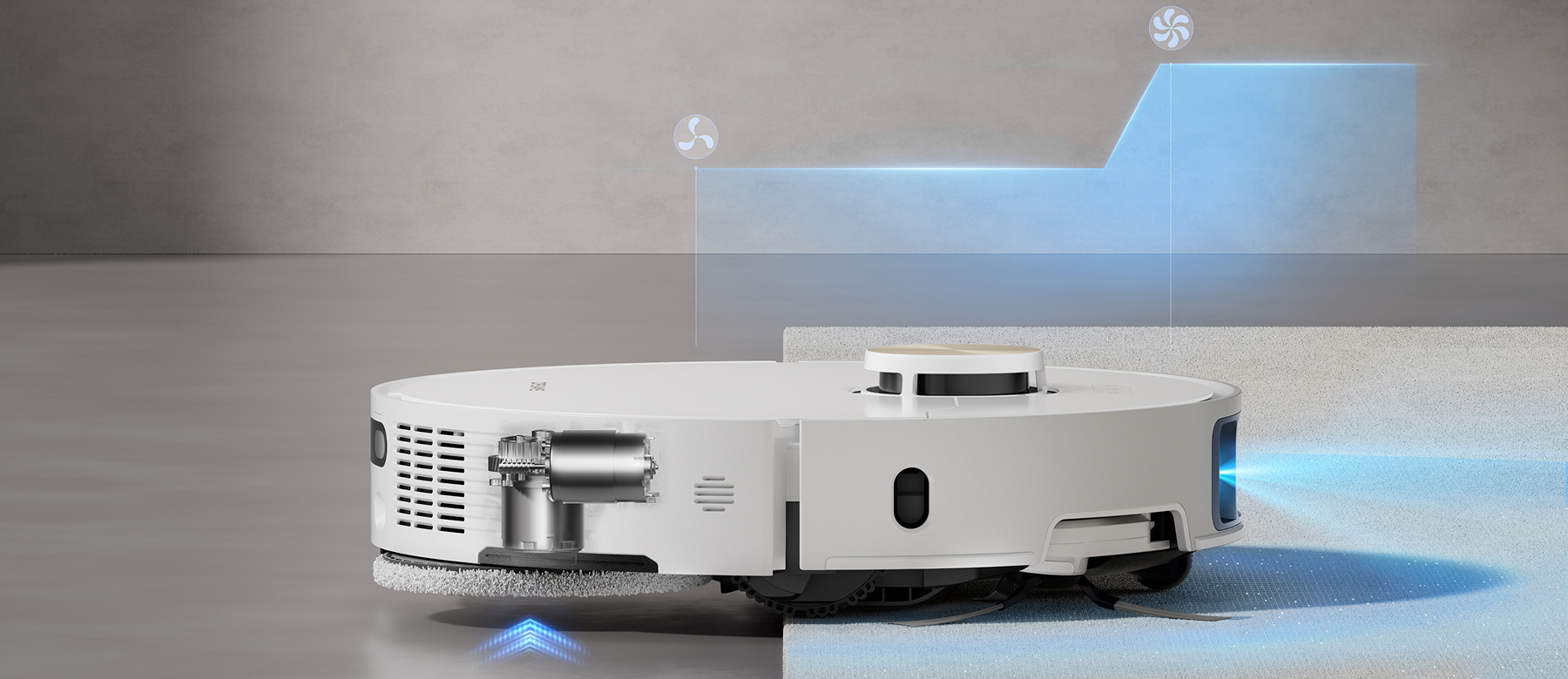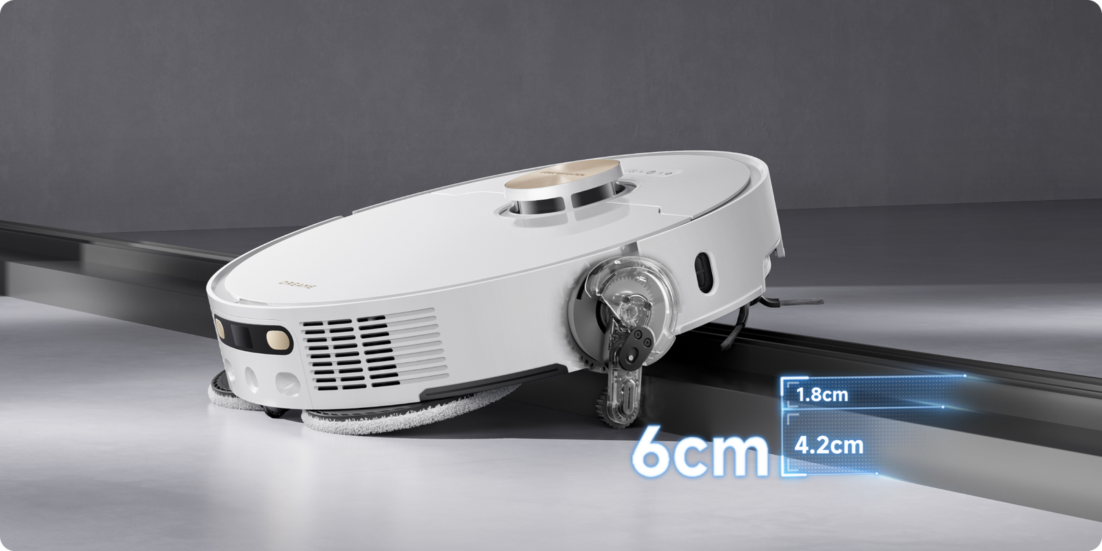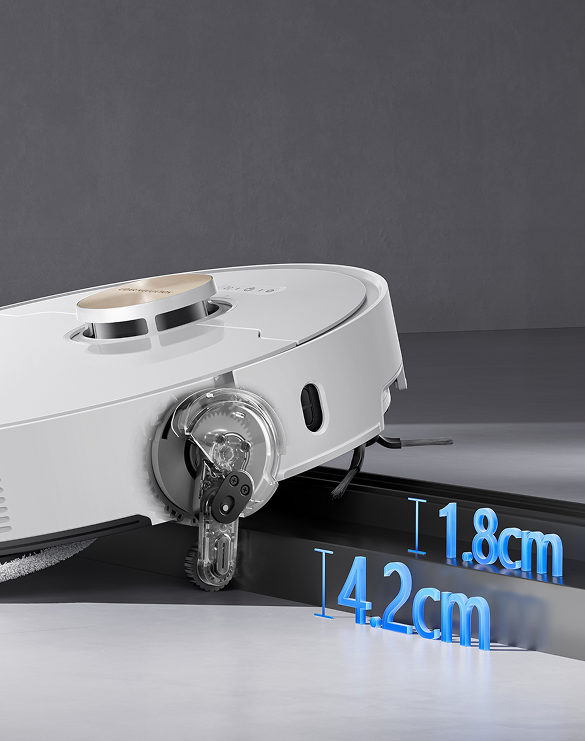 - *10.5mm: Based on tests in our in-house lab. The height difference of the robot vacuum is 10.5mm before and after mop lifting.