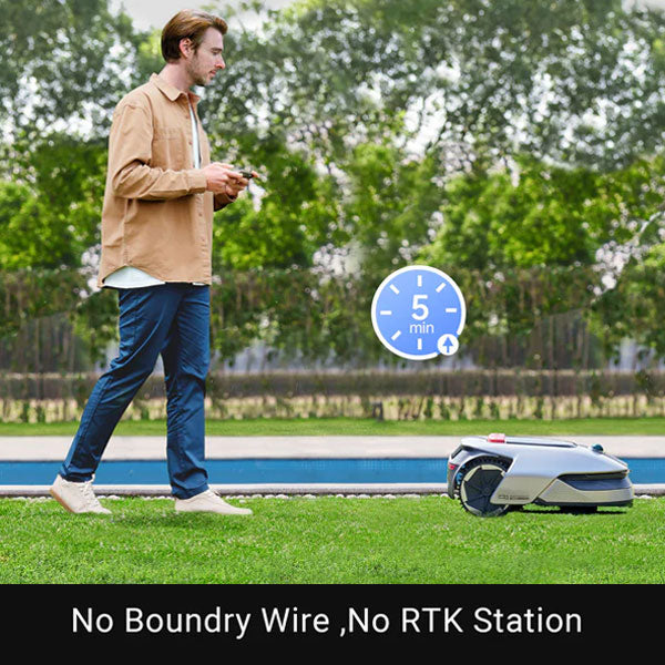 It intelligently returns to recharge when low on power, and resumes mowing upon recharge, guaranteeing a meticulous and thorough lawn coverage.