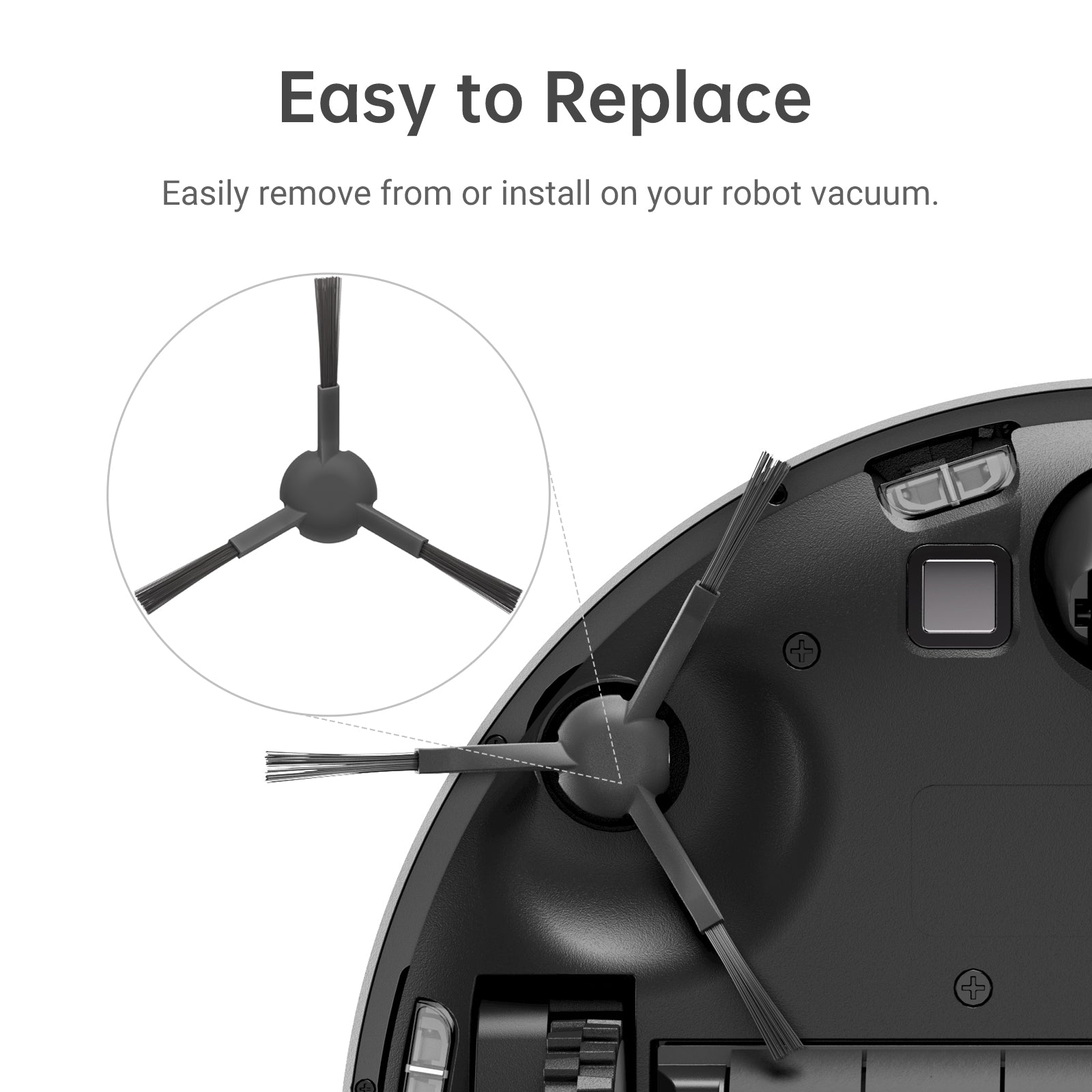 - 【Sweeps Clean 】The 3-armed side brushes clean up the dust in corners and concentrates the dust and debris toward the suction port during rotation, making cleaning more effective and thorough.