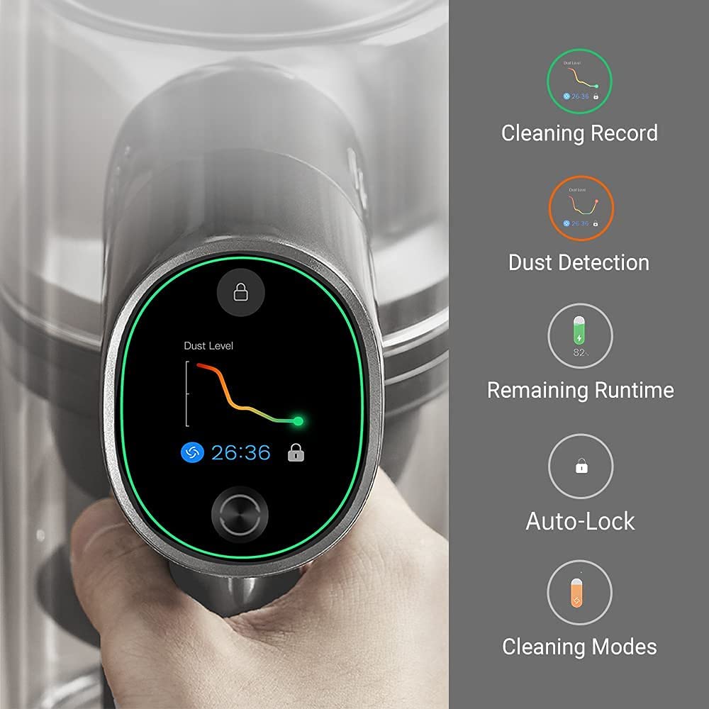 The T30 is an all-in-one premium streamlined appliance with an HD full-colour screen that tells you the level of dust underneath, battery life, cleanup reports and anything else you need to know. Auto-Lock also allows you to enable the continuous working mode. 8-stage noise reduction, cyclone filtration system and smart surface scanning and adjusting are just icing on the cake.