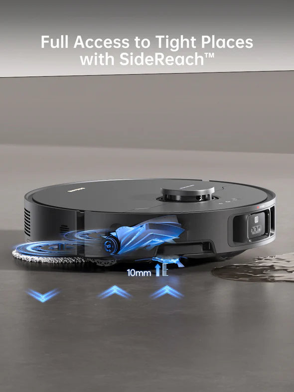 X40 Ultra's liftable side brush moves over 10mm (0.39in)* up and down in sync with the mop and main brush, efficiently separating wet and dry cleaning.