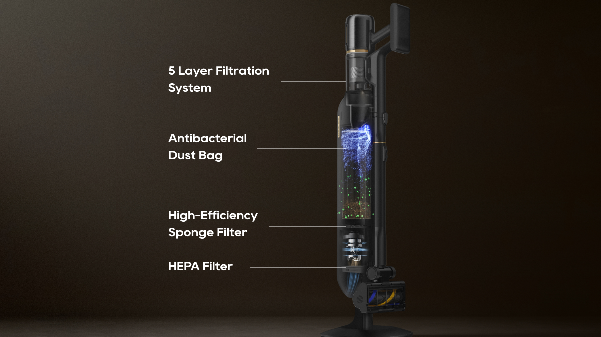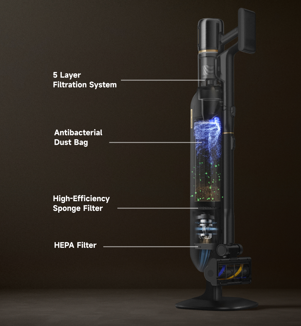 HEPA FiltrationThe auto-adjusting inlet design prevents long-pile carpets from wrapping and jamming the roller—delivering smooth, uninterrupted suction and solving the common clog-and-stop issue found in traditional vacuums.