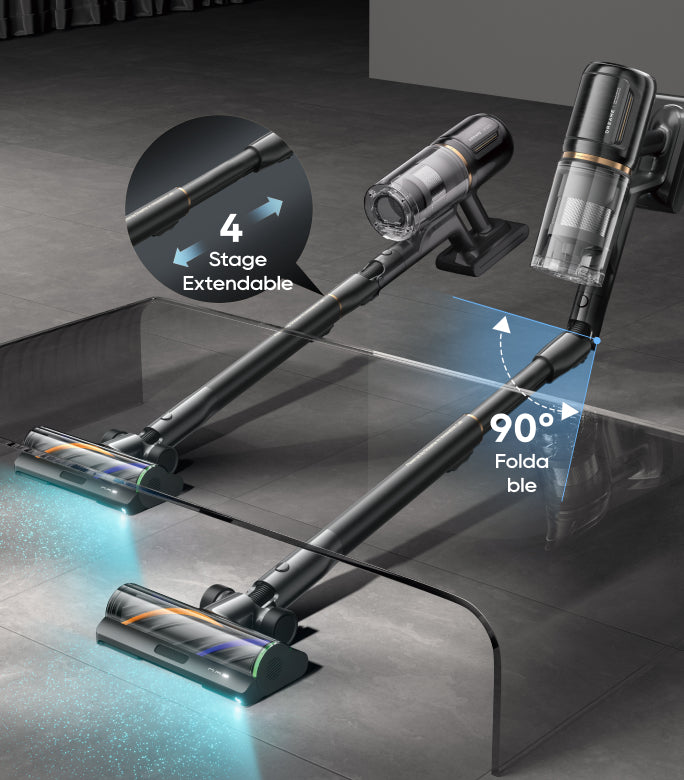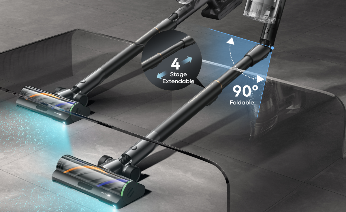 The tube easily adapts to your needs — with 4 length levels, it bends and stretches to reach deep under beds, sofas, and tight spaces without the need to crouch or move furniture.
