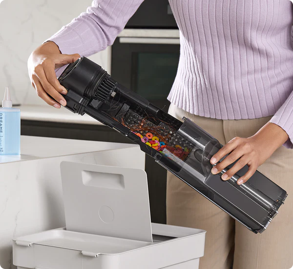 The easy-to-empty filter container separates solid dirt from liquid waste, making the final cleanup quick and convenient.
