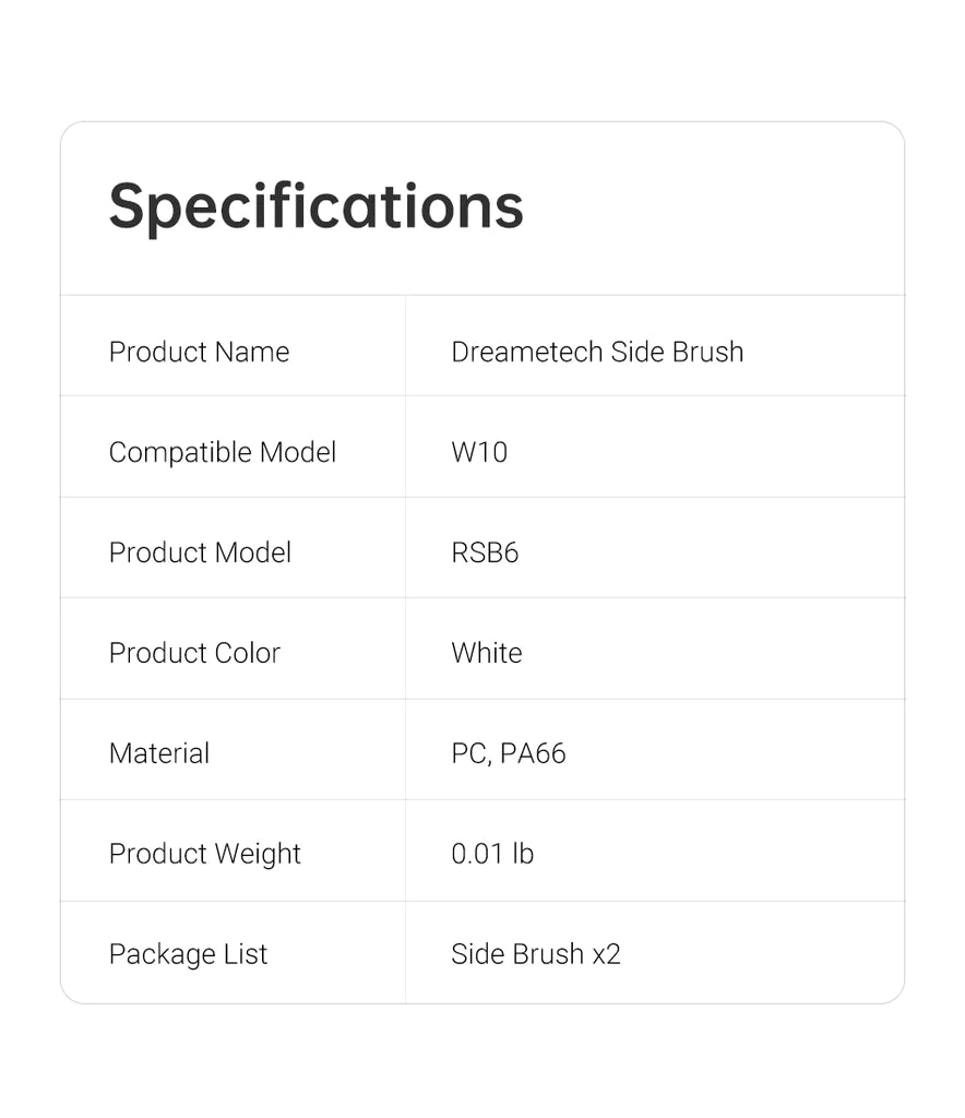- The replacement side brush is easy to install and remove. No tools are needed.